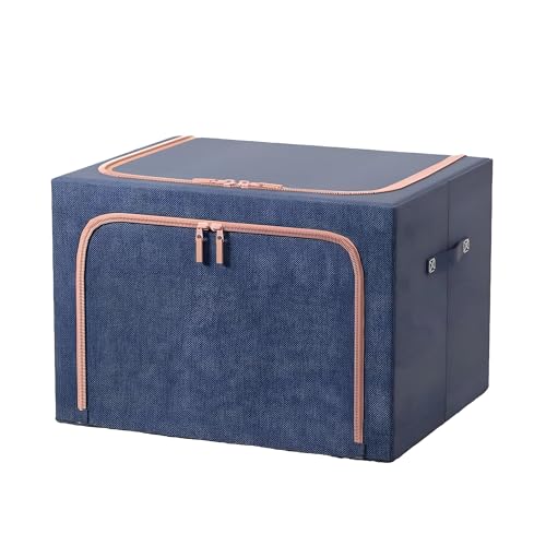 Generic - صندوق تخزين بإطار معدني قوية مع هيكل داعم للأشياء الثقيلة مثل الكتب أو الأدوات أو الملابس متين ويدوم طويلا (لون أزرق غامق)