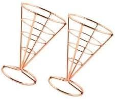 - تصميم أنيق: حامل سلة معدني على شكل مخروطي بلون ذهبي وردي مع تصميم إطار حلزوني أنيق، مثالي لتقديم وعرض البطاطس المقلية أو الوجبات الخفيفة