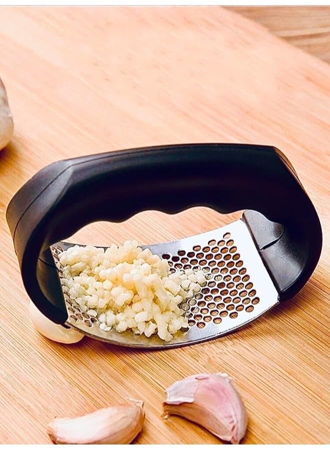 Generic - هراسة ثوم معدنية بمقبض بلاستيكي مريح - لسحق الثوم بسرعة وسهولة