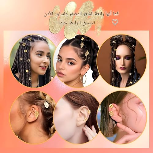 - توفر إكسسوارات الشعر الضفيرة 24 نمطًا مختلفًا، بما في ذلك 4 أنواع فريدة من حلقات الشعر الذهبية. تم تصميم كل قطعة لمساعدتك على خلق مظهر فريد مناسب لأي مناسبة، مما يجعل تصفيف شعرك متعدد الاستخدامات. مع العديد من الأنماط، يمكنك بسهولة ضبط مظهر شعرك وتخصيصه سواء للمناسبات الرسمية أو النزهات الكاجوال الممتعة.