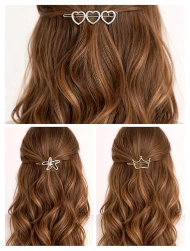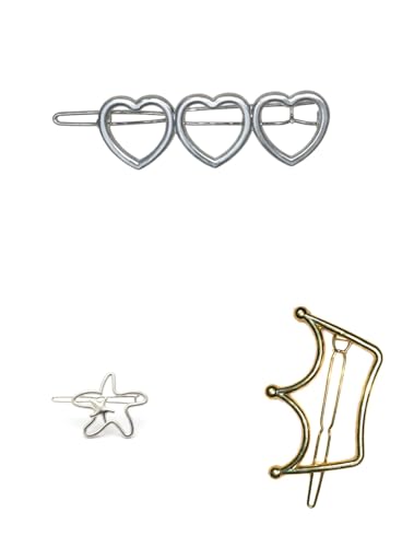 - تصاميم متنوعة وعصرية: مجموعة مشابك شعر معدنية تتضمن أشكال القلوب الثلاثية والنجمة والتاج لإطلالات مختلفة تناسب جميع المناسبات اليومية والخاصة