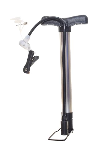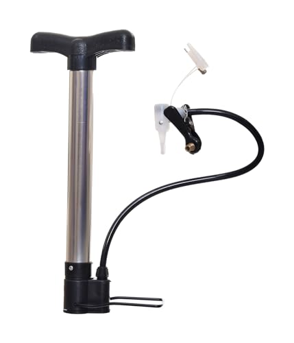 Generic - مضخة يدوية معدنية بقاعدة مستطيلة مع خرطوم وإبرة نفخ - فضي