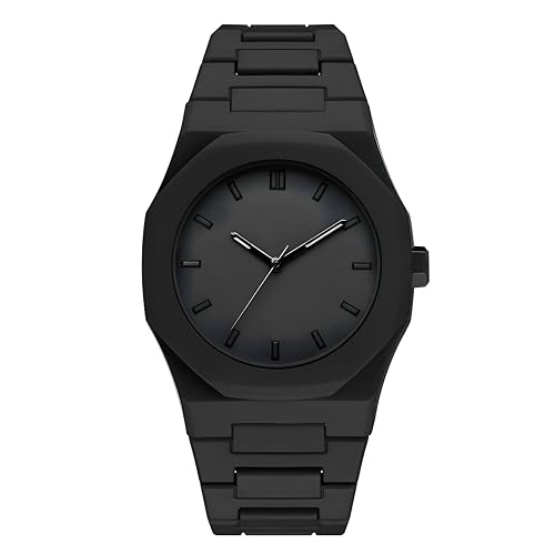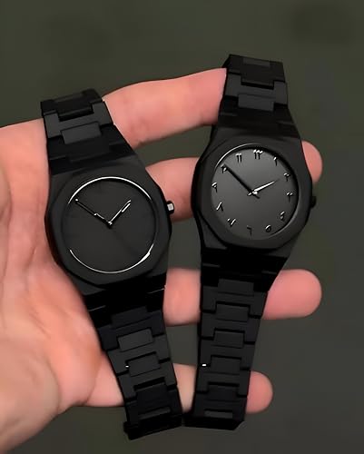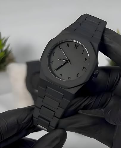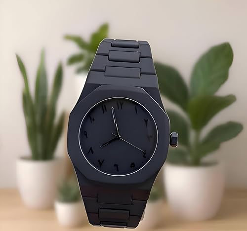 Generic - ساعة يد معدنية بهيكل من الكربون بلون أسود بالكامل مع وجه سداسي مميز، أنيقة لجميع المناسبات