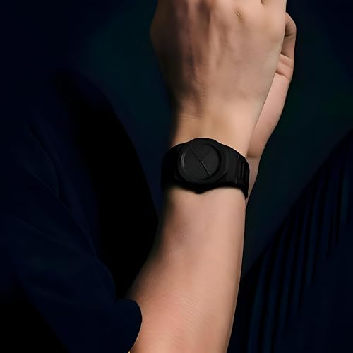 تصميم أسود بالكامل, تصميم هيكل سداسي, سوار معدني مدمج, شاشة عرض الأرقام العربية, مقاوم للخدش
