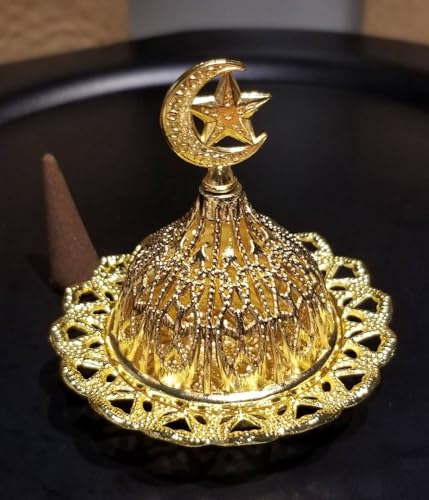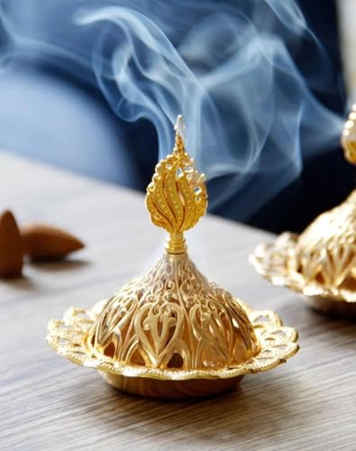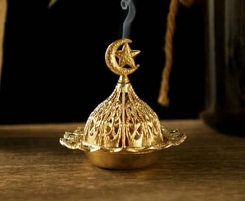 Generic - مبخرة معدنية - حامل شموع ذهبي عتيق، حاوية بخور العيد، مبخرة للعلاج العطري لشهر رمضان، ديكور طاولة الحفلات الاسلامية، معدن
