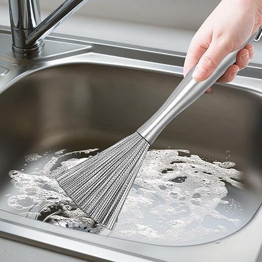 - تصميم متين: فرشاة تنظيف معدنية مصنوعة من الستانلس ستيل عالي الجودة للاستخدام الطويل الأمد في المطبخ