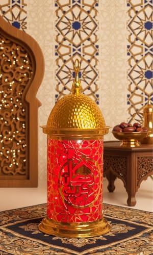 Generic - فانوس معدني مضيء بتصميم إسلامي، ذهبي وأحمر، ارتفاع 30 سم، ديكور رمضاني