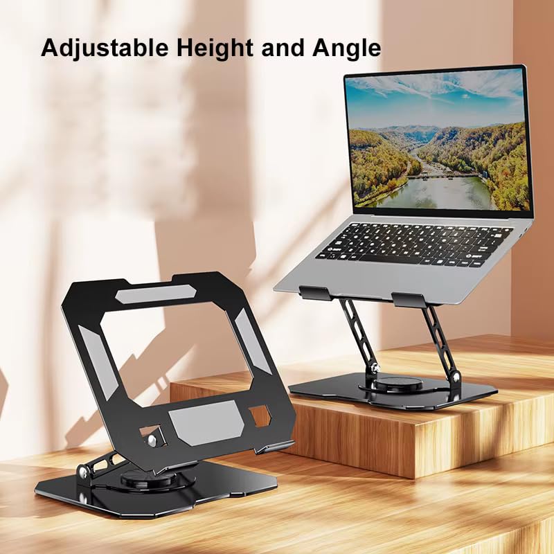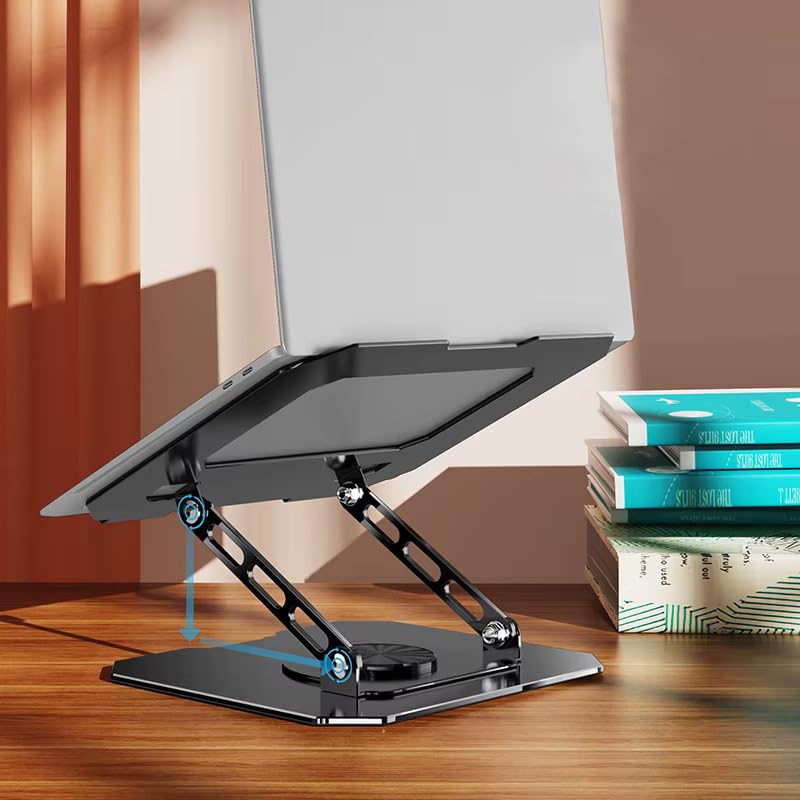 Generic - حامل لاب توب معدني بقاعدة دوارة 360 درجة – حامل لابتوب قابل للتعديل بارتفاع مريح لتخفيف إجهاد الرقبة والكتفين، قاعدة ثابتة ومضادة للانزلاق لأجهزة MacBook وDell وHP وAsus وLenovo حتى 17 بوصة (lap 1)