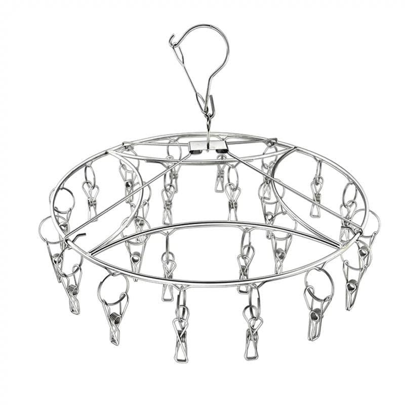 Generic - علاقة ملابس معدنية للغسيل، 20 مشبك، تصميم دائري متعدد المستويات، فضي اللون، للاستخدام الداخلي والخارجي