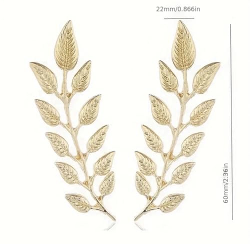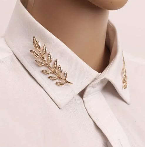 Generic - دبابيس ياقة معدنية على شكل ورق شجر، بروشات بتصميم سنابل القمح باللون الفضي، اكسسوارات قميص بطابع جناح كلاسيكي، 60 × 22 ملم (زوج من قطعتين)