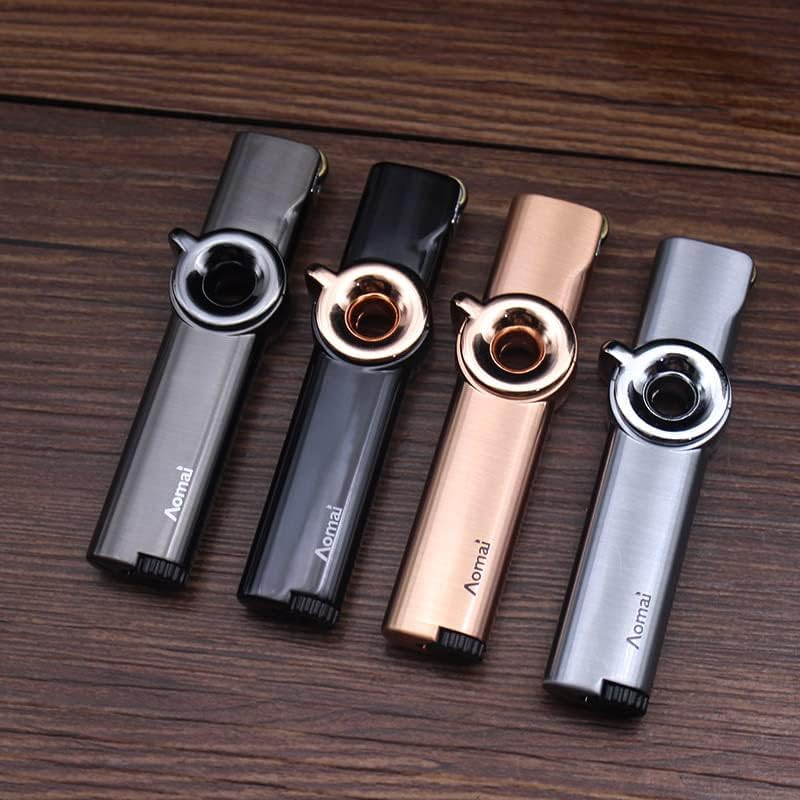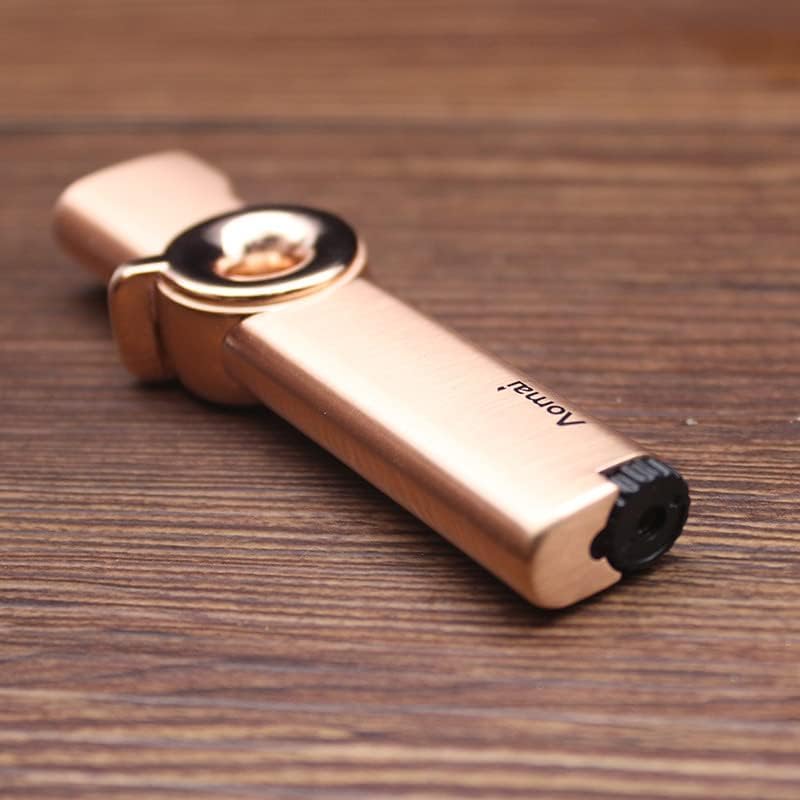 - ولاعة شعلة معدنية مقاومة للرياح بلون ازرق نفاث تعمل بغاز البوتان عند 1300 درجة مئوية، ولاعة سجائر محمولة للرجال والنساء (ذهبي)