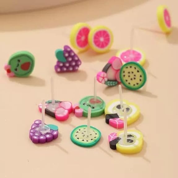 Generic - اقراط معدنية متعددة الالوان بتصميم فاكهة متنوعة | صغيرة اطفال للبنات والنساء الساحرات - مجموعة من 36 زوج-عبوة في صندوق على شكل قلب للفتيات