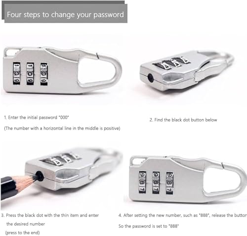 - قفل مركب قابل لإعادة الضبط مكون من 3 أرقام. مصنوع من سبيكة عالية الجودة بثلاثة أرقام، وهو رائع جدًا لقفل أمتعتك أثناء السفر. مصمم خصيصًا لتأمين الأمتعة وحقائب اليد والمحافظ والخزائن وصناديق الأدوات وغيرها من التطبيقات منخفضة الأمان. قفل مركب صغير ومدمج وقابل للحمل للسفر يتيح لك تعيين رقمك السري الخاص في أي وقت دون الحاجة إلى أداة. يأتي مع تعليمات تشغيل باللغة الإنجليزية لتتمكن من استخدام قفل المركب المكون من 3 أرقام بسهولة.