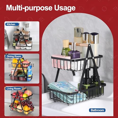 - تتميز سلة الفاكهة المعدنية المكونة من طبقتين بتصميم عمودي موفر للمساحة مع قسمين سلكيين بحجم فريد - الطبقة السفلية (10.7 انش طول × 17 سم عرض × 2.8 انش ارتفاع) وطبقة علوية (8.3 انش طول × 17 سم عرض × 2.2 انش ارتفاع) - مما يسمح بالتنظيم الفعال للفواكه والخضروات والخبز والتوابل أو حتى مستحضرات التجميل، مما يزيد من التخزين بدون تحتل مساحة مضادة مفرطة.