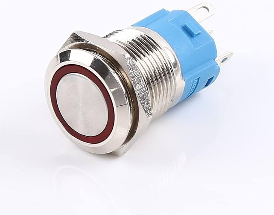 Generic - زر ضغط معدني مقاس 16 ملم وقدرة 12:24V بتصميم ذاتي القفل مع ضوء أحمر