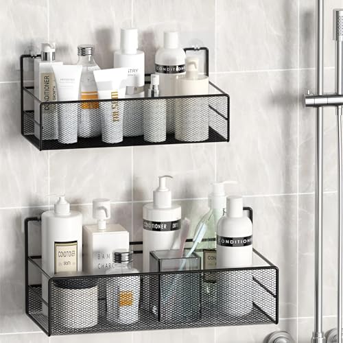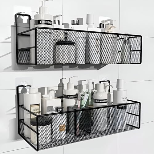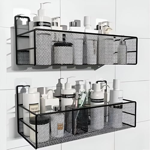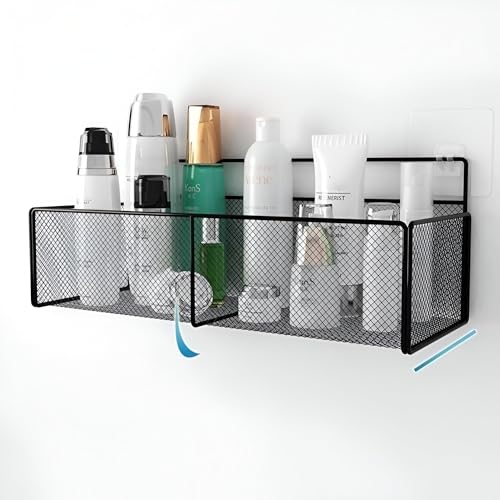 Generic - رف معدني - رف حمام واسع مصمم لحمل جميع منتجات التجميل الخاصة بك، مصنوع من مواد عالية الجودة مقاومة للصدأ، تركيب بسيط بدون أدوات، لمسة نهائية سوداء أنيقة