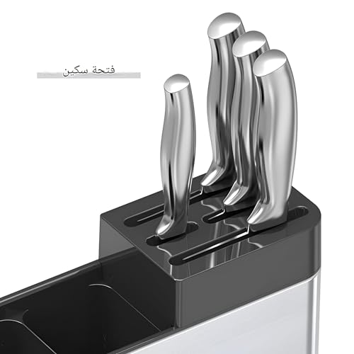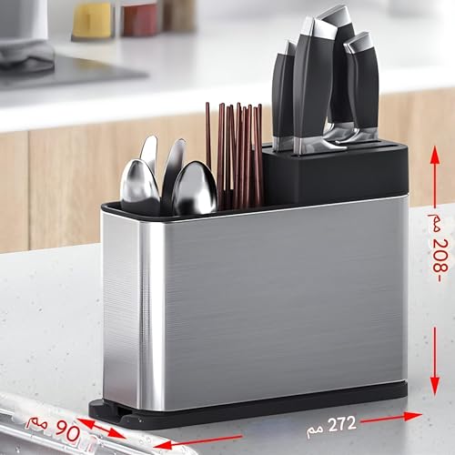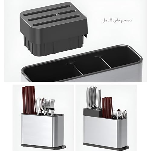 - حامل أدوات المائدة المصنوع من الستانلس ستيل مقاوم للصدأ، مما يضمن المتانة وطول العمر في بيئة مطبخك، على عكس البدائل البلاستيكية التي قد تتلطخ أو تتحلل بمرور الوقت.