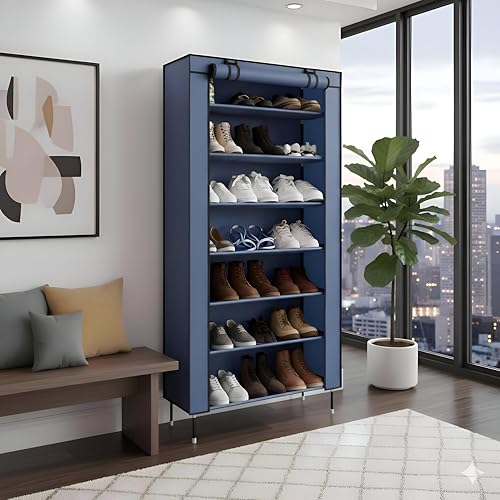 Generic - رف احذية معدني - تخزين احذية من سبعة مستويات مع مكون مقاوم للصدأ لتنظيم الاحذية وحمايتها من القاعدة امام الباب والحفاظ عليها بدون مقعد.