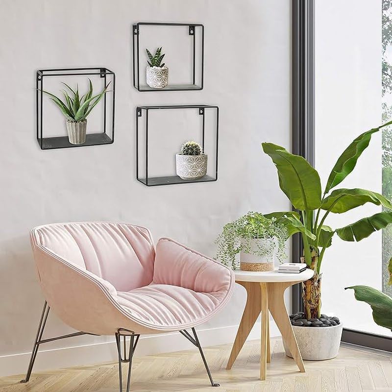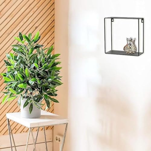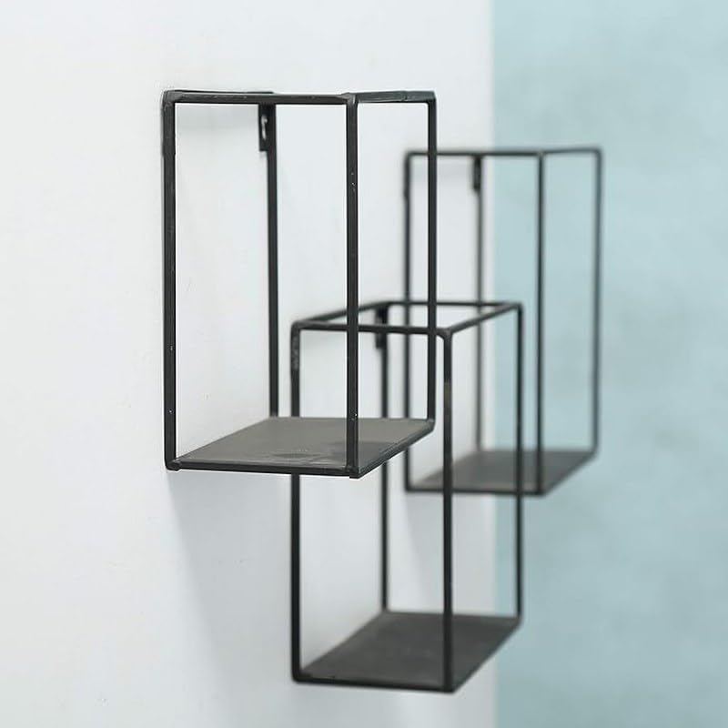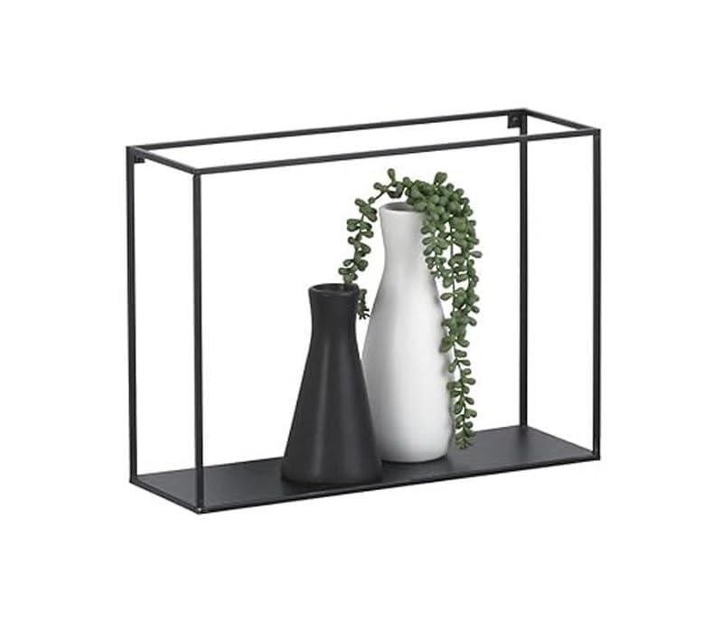 Home Gallery - رف معدني مفرد بتصميم مكعب، لون أسود، مقاس 60×60×15 سم، من هوم جاليرى، معدن خشب