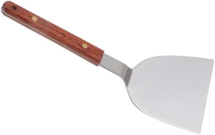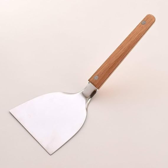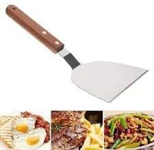 Generic - ملعقة مسطحة معدنية للشواء والطهي بمقبض خشبي – متعددة الاستخدامات