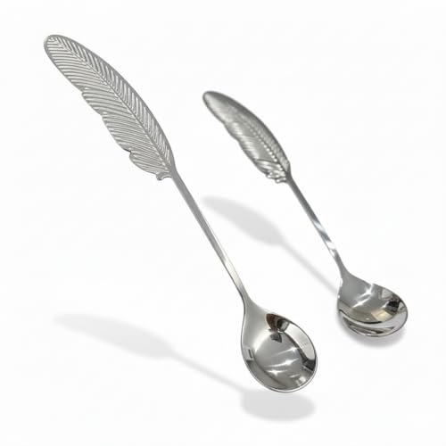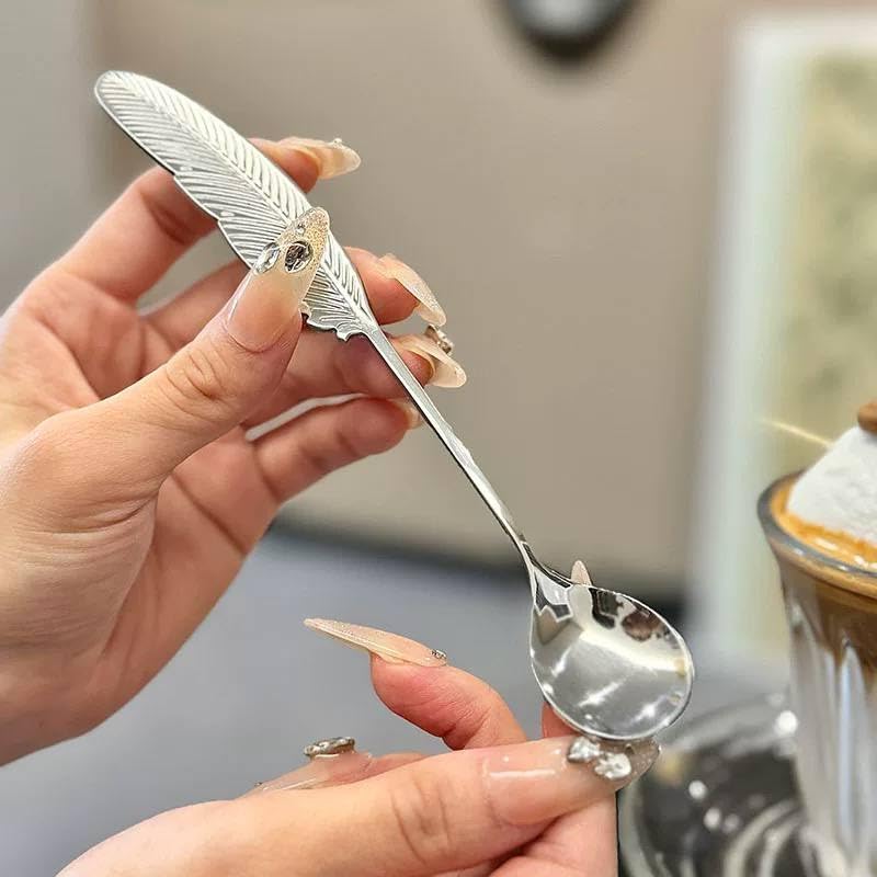 - طقم مكوّن من 6 معالق معدنية بتصميم شكل ريشة مبتكر يضيف لمسة جمالية على مائدة الطعام.