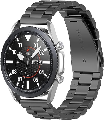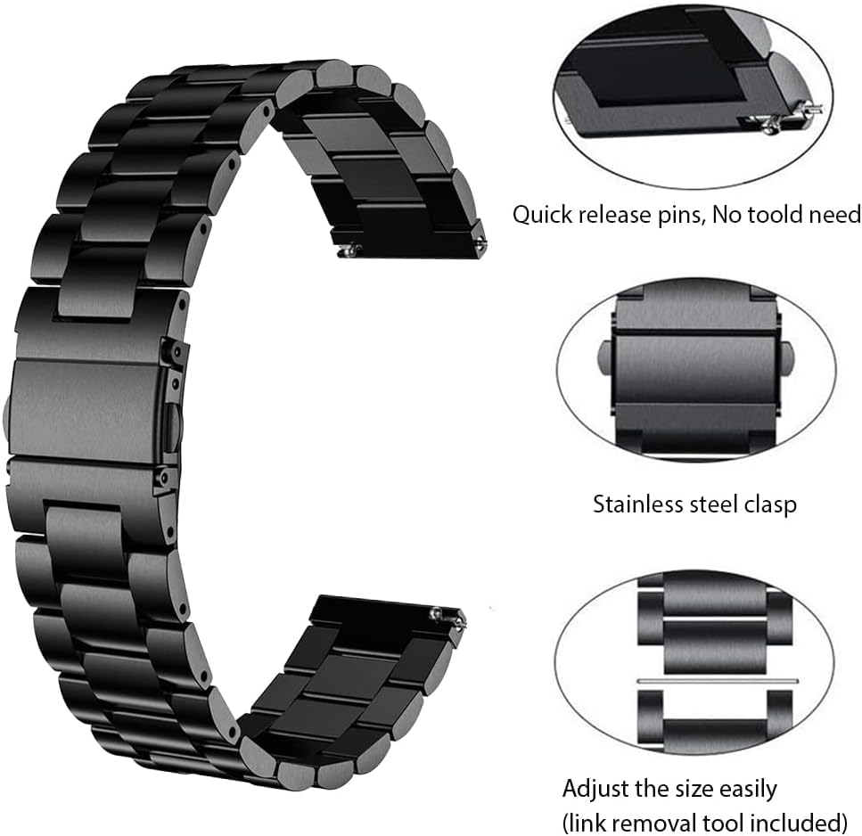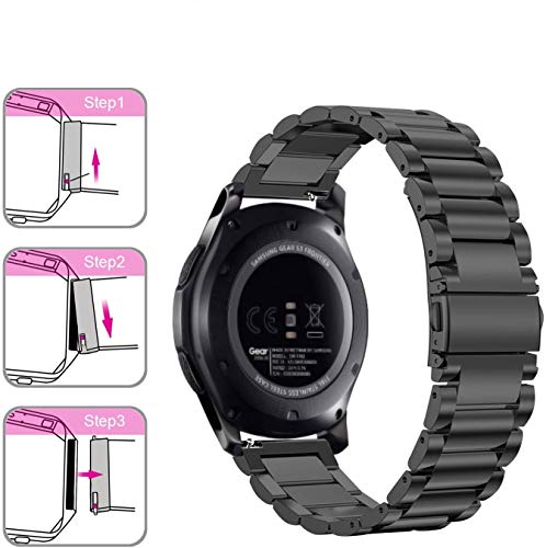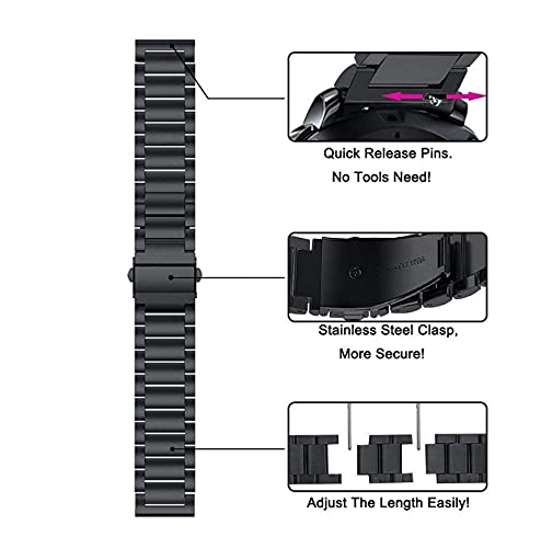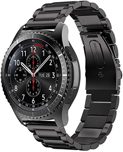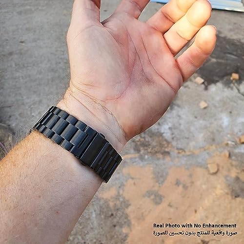 Smart Stuff - سوار معني من الفولاذ المقاوم للصدأ لساعة سامسونج جالاكسي ووتش 46 ملم/ هواوي جي تي 2/ جير اس 3 فرونتير اند كلاسيك/ هونر ماجيك 2 / فوسيل - 22 ملم - أسود