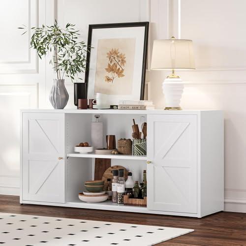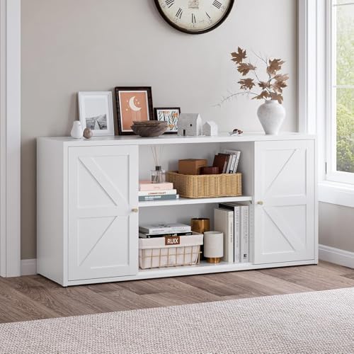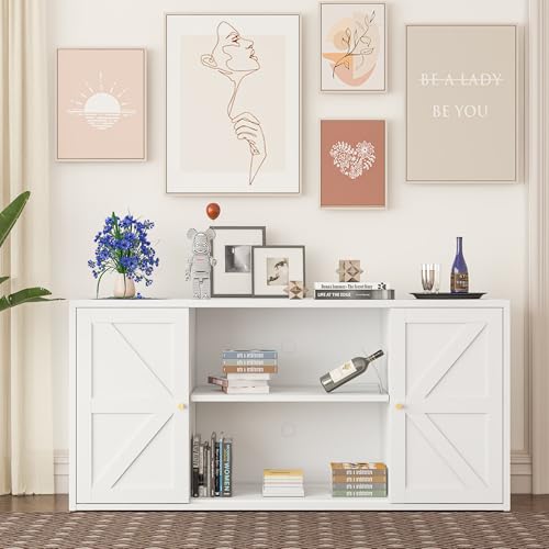 Baborokic - خزانة تخزين معدنية مع ابواب، خزانة بوفيه جانبية لبيت المزرعة، خزائن تخزين مع ادراج وارفف، بار القهوة للمطبخ وغرفة الطعام وغرفة المعيشة، ابيض (صغير)