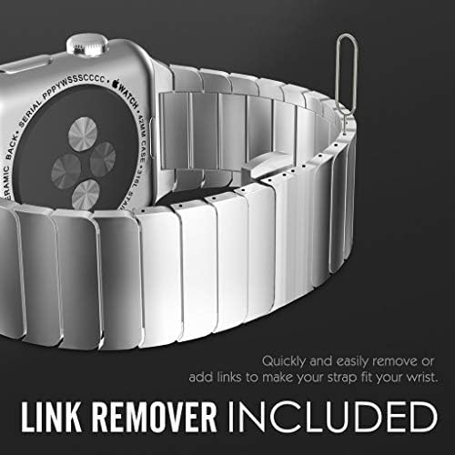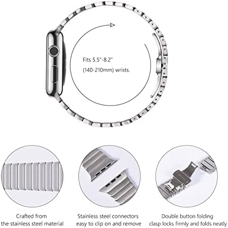 سوار معدني متوافق مع سوار ساعة ابل 42 ملم 44 ملم سلسلة 3 4 5 6، سوار بحلقات من الستانلس ستيل، اسود، 42 ملم، للجنسين