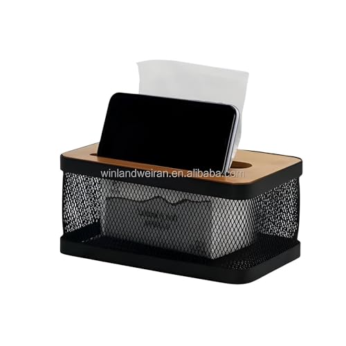 Generic - علبة مناديل معدنية مزودة بغطاء خشب بامبو وحامل للموبايل، بتصميم جديد يجمع بين المودرن والكلاسيك، مناسب للاستخدام في الفنادق والقاهي والمنازل والمكاتب وتتسع لحوالي 550 منديل بحجم 21*12*10