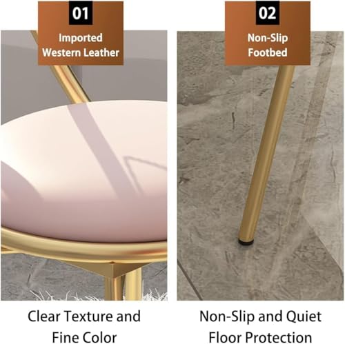 - خامة فاخرة: كرسي المكياج مصنوع من إطار معدني ذهبي فاخر، مما يوفر مظهرًا أنيقًا وأنيقًا. مزود بأقدام مطاطية غير قابلة للانزلاق، يبقى الكرسي ثابتًا على الأسطح المختلفة، مما يمنع أي انزلاق أو حركات عرضية.