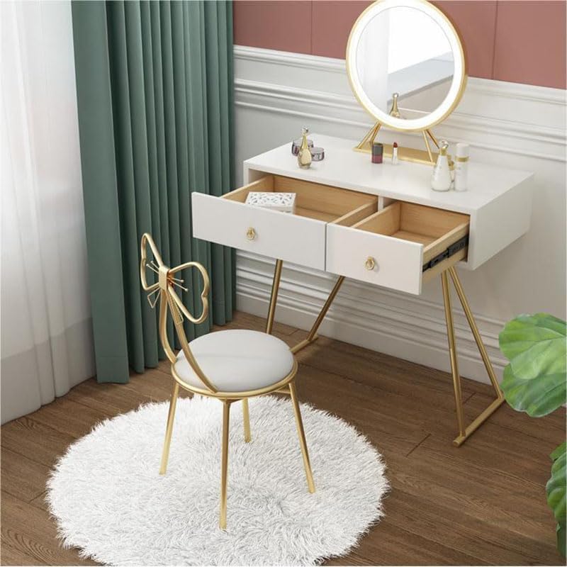 JKJ&ZXZ - كرسي طاولة زينة معدني، كرسي مكياج مبطن من الجلد، كرسي طاولة زينة ذهبي على شكل C، كرسي مكياج بتصميم فراشة من JKJ&ZXZ (لون أبيض)