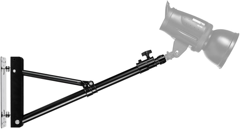 Generic - حامل معدنى ذراع للتثبيت على الحائط للتصوير الفوتوغرافي والفيديو وجلسات التصوير الاحرافيه، للسوفت بوكس والاوكتا و الرينج لايت و كرومة الاستوديوهات، دوران مرن 180 درجة، اقصى طول 180 سم.