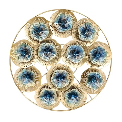 Generic - منحوتة حائط معدنية بتصميم زهور حديث، لوحة دائرية 45 سم تعلق على الحائط لغرفة المعيشة أو غرفة النوم تضيف لمسة فنية إلى مساحتك، أزرق