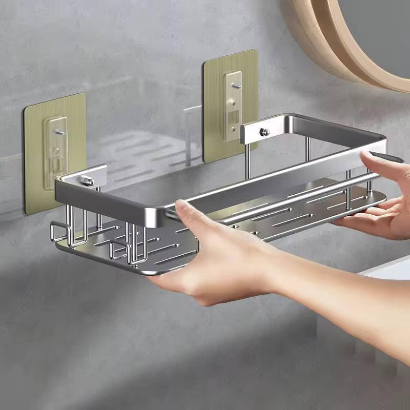 رف حائط معدني مستطيل بلون أسود منظم ديكور عصري مجلفن مقاوم للصدأ بتصميم انسيابي للحمام والمطبخ وغرف المعيشة EL