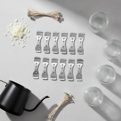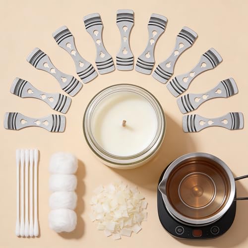 - مجموعة كاملة: تتضمن 10 حوامل فتيل معدنية مصممة خصيصًا لصنع الشموع، مثالية لتوسيط الفتائل بأحجام مختلفة من البرطمانات الزجاجية