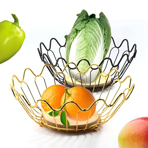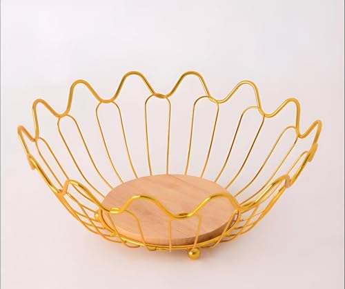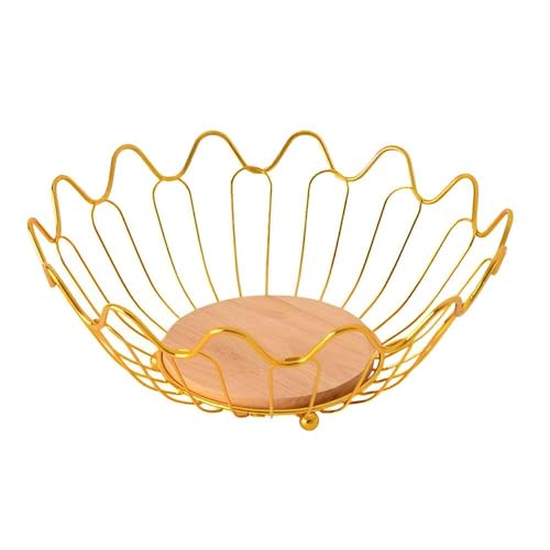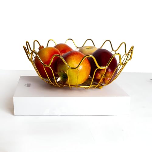 Generic - حاوية سلكية معدنية - لمسة ذهبية فاخرة بنمط زهرة اللوتس لعرض انيق للفواكه وتنظيم المطبخ في المنازل الحديثة (موديل 3)