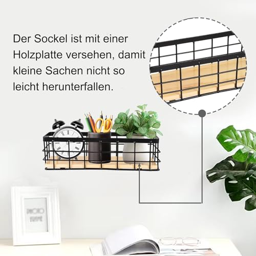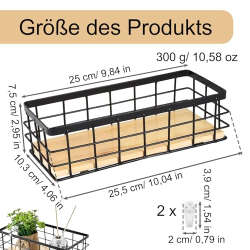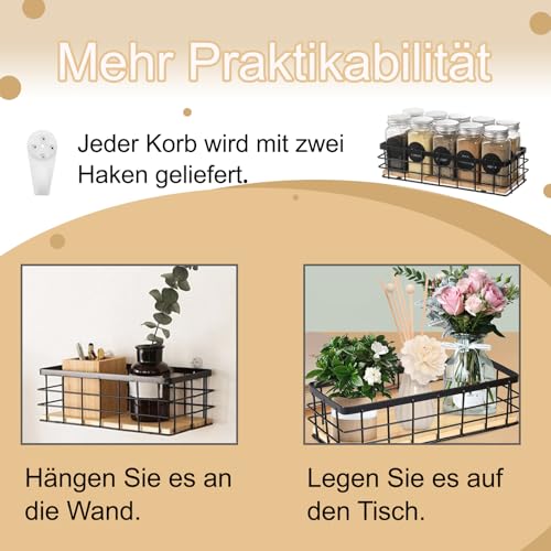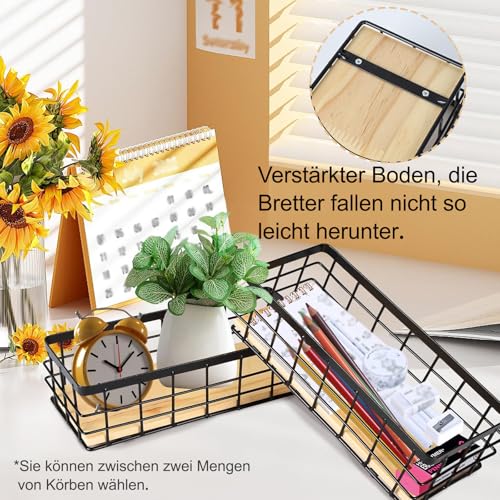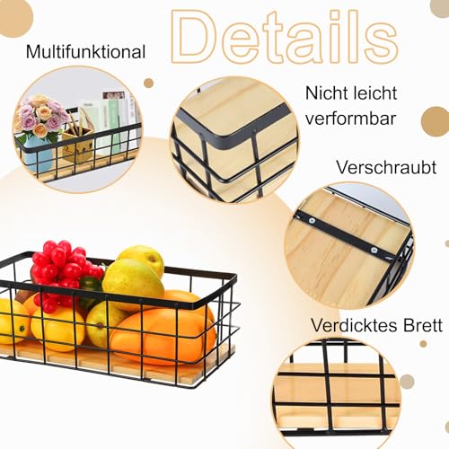 YUNXCNA - سلال تخزين سلكية معدنية، سلال تخزين سلكية مع قاعدة خشبية، سلال تخزين سلكية، سلال ديكور للتخزين المنزلي، سلة معدنية مستطيلة للتعليق على الحائط