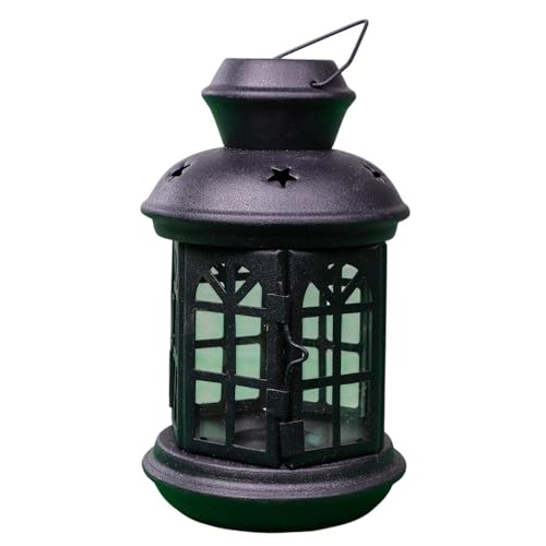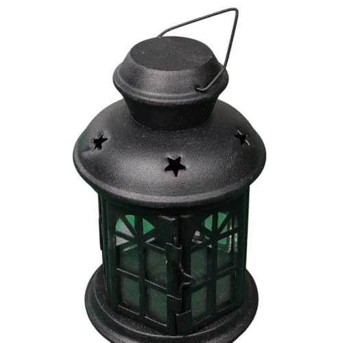 Generic - فانوس رمضان من المعدن والبلاستيك بلون أسود مطفي مع لوح زجاج أخضر، مقاس 21 × 11 × 11 سم