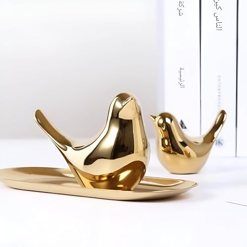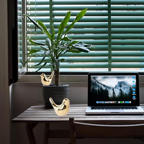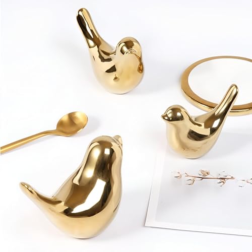 Generic - حرف طيور سيراميك لامعة معدنية - مجسمات طيور صغيرة مزخرفة للديكور الداخلي والمكتب والمنزل وسطح المكتب وعتبة النافذة والعرض الفني بونساي ودعائم التصوير الفوتوغرافي (3 قطع)