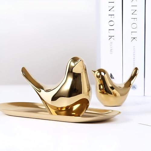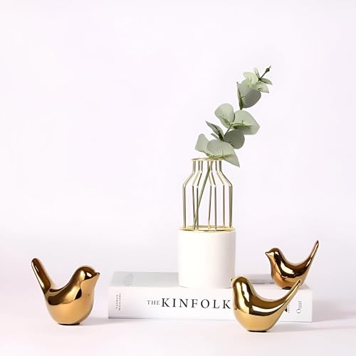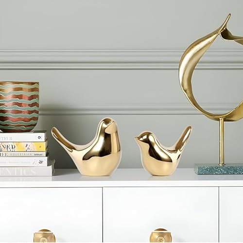 Generic - مجسمات طيور سيراميك لامعة معدنية - تماثيل طيور صغيرة جديدة لديكور المكتب/المنزل، فن سطح المكتب، ديكور عتبة النافذة، موضوع بونساي، إعداد التصوير الفوتوغرافي (3 قطع)