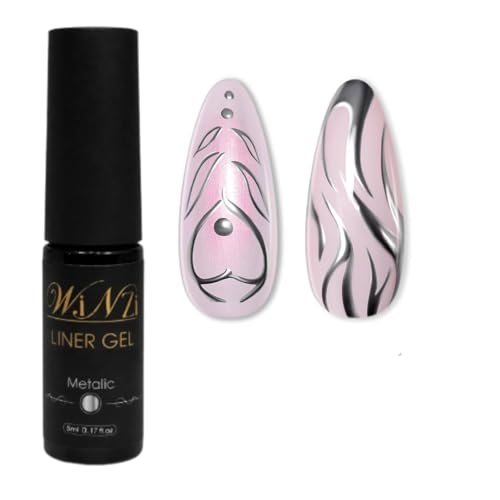 WINZI - طلاء أظافر جل فضي معدني للتحديد مع فرشاة رفيعة لرسم أطراف الأظافر الفرنسية والخطوط الدقيقة وتفاصيل فن الأظافر، جل يُزال بالنقع ويجفف بمصباح الأشعة فوق البنفسجية أو الليد، لون فضي ناعم، سعة 5 مل