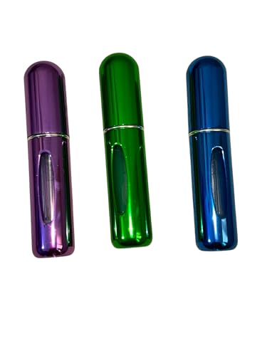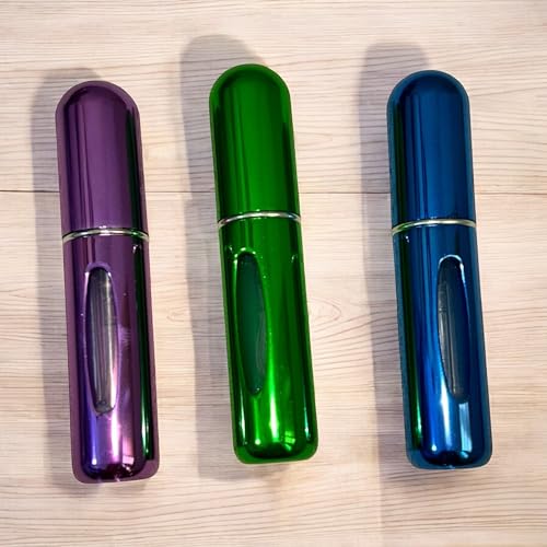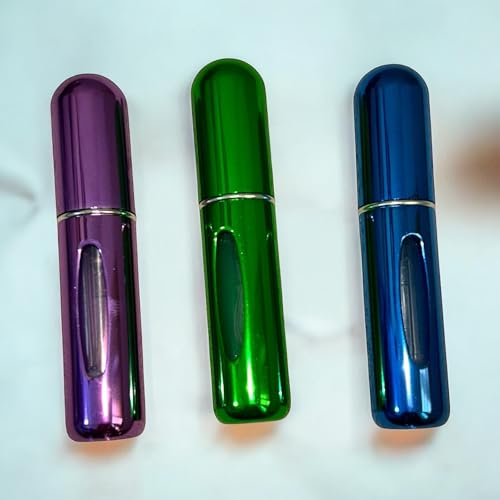 Generic - بخاخ عطري محمول وقابل لاعادة التعبئة من ميتاليك ترافل، مثالي للسفر او حمل عطرك المفضل اثناء التنقل، 3 الوان - اخضر وارجواني وازرق