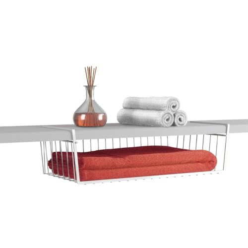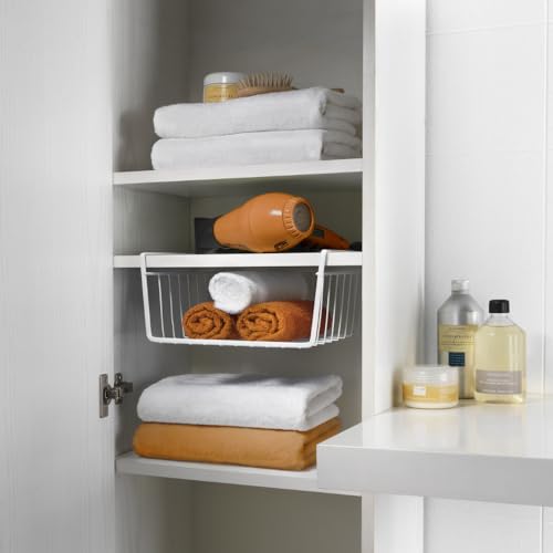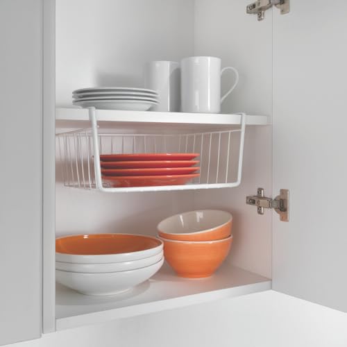 Metaltex - سلة بابتكس المعلقة للتخزين من ميتالتكس، يمكن تعليقها تحت الرفوف، 30 سم، خليط معدني صلب، أبيض