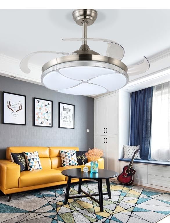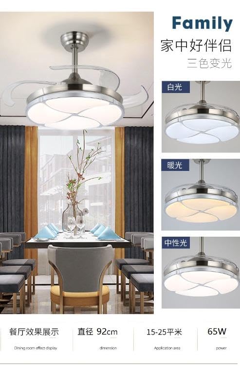 Generic - مروحة سقف باضاءة LED من ميتاليك بـ6 سرعات، تعمل بالكهرباء ومقاومة للخدش (معدنية)