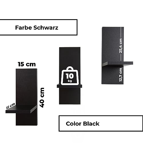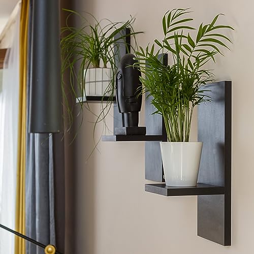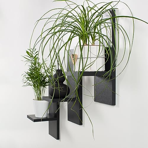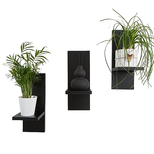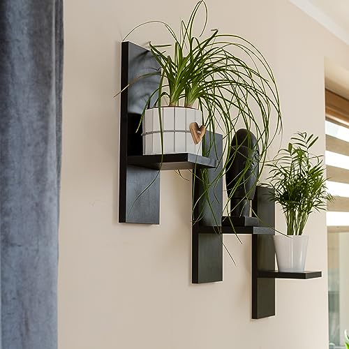 Mex-System - مجموعة ارفف زهور من ميكس سيستم مكونة 3 حائط خشبية انيقة لنباتاتك وتزيين الحائط اسود ملمع مادة الخشب