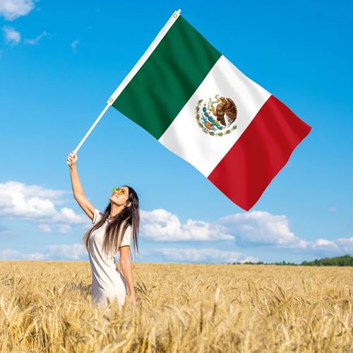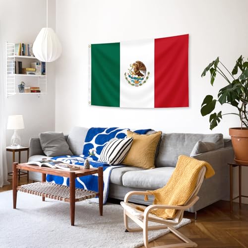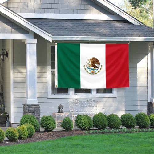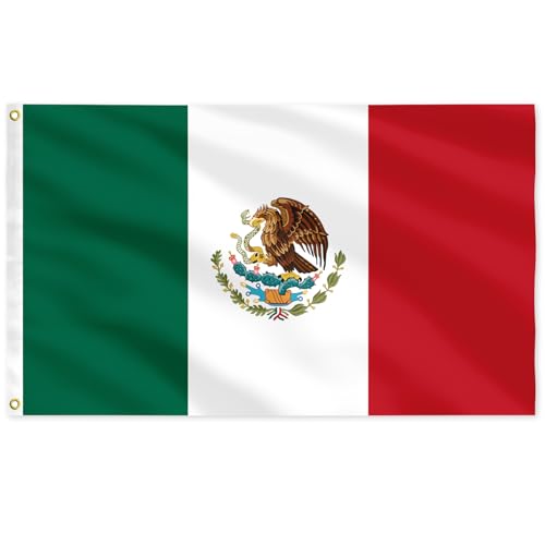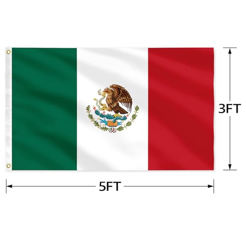 IELNDNX - علم المكسيك 3×5 قدم (90 سم × 150 سم) متين وملون مع حلقة قفل نحاسية مناسبة للديكور الداخلي والخارجي.
