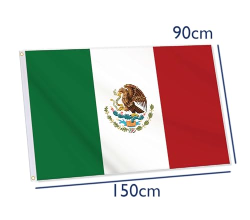 NOVDEK - علم المكسيك، علم مكسيكي 3 × 5 قدم، 36 × 60 انش كبير رقمي بطباعة مزدوجة متينة من البوليستر السميك 150D مع حلقتين نحاسيتين