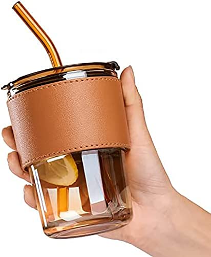 MEXONIC - كوب قهوة من ميكسونيك بمقبض جلدي مع ماصة وكوب ومقبض زجاجة زجاجية شفاطة شرب للبالغين غطاء وشفاطة متعدد الألوان 2