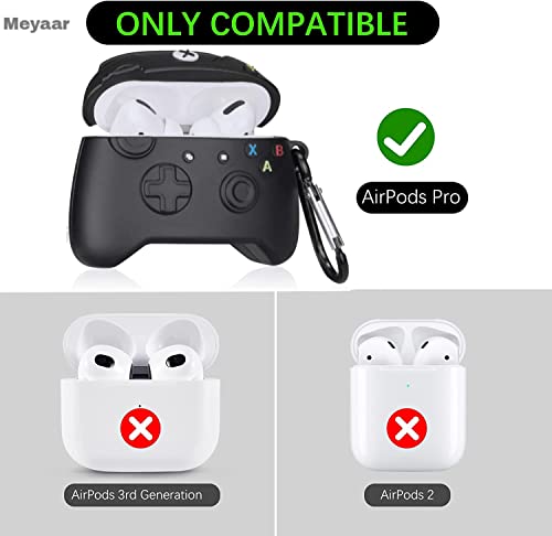 Meyaar - جراب سيليكون لطيف من ميار متوافق فقط مع سماعات ابل ايربودز برو سلسلة مفاتيح قوية غطاء جهاز تشغيل العاب الفيديو الرقمية اسود .
