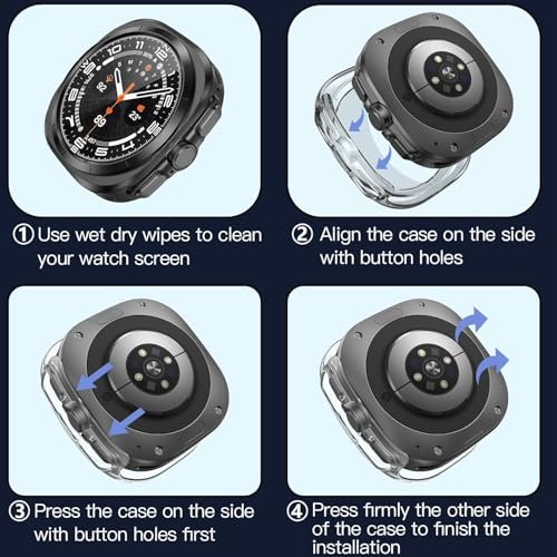 - [ملاءمة مثالية وسهلة التركيب]: مصمم خصيصًا لساعة سامسونج جالاكسي الترا 47 ملم، يوفر هذا الجراب فتحات دقيقة لجميع الأزرار والمستشعرات. سهل التركيب والإزالة، مما يجعل من السهل تبديل الحافظات دون التأثير على وظائف الساعة.